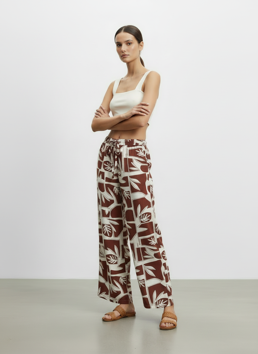 Make a statement in these flowy wide-leg pants featuring a bold black and ivory zebra print. Designed with a comfortable elastic waistband and adjustable drawstring tie, these pants combine effortless style with comfort perfect for resort days, sunset strolls, or chic casual outings.
